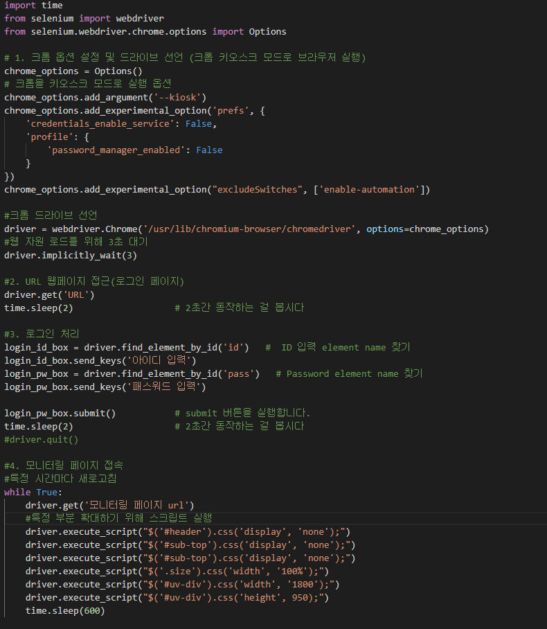 위와 같은 처리는 파이썬으로 개발하고 라즈베리파이로 부팅 후 자동으로 py 파일을 실행하도록 처리를 하였다.