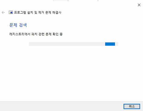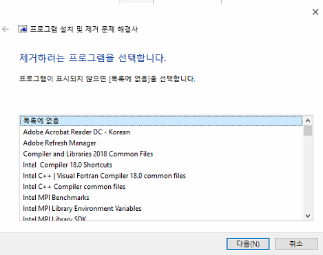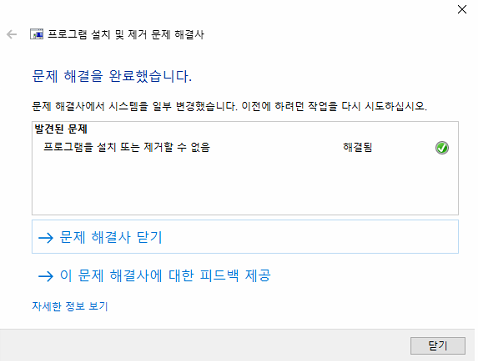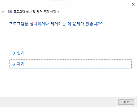 그래서 프로그램 설치 제거 문제해결사를 이용해서 프로그램을 정상적으로 제거 후 해결을 하였습니다.