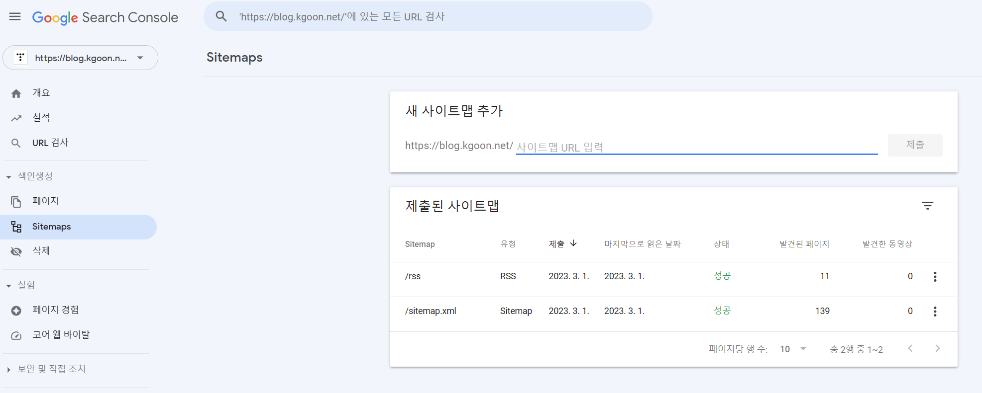 - sitemap.xml , rss 2개를 제출합니다.