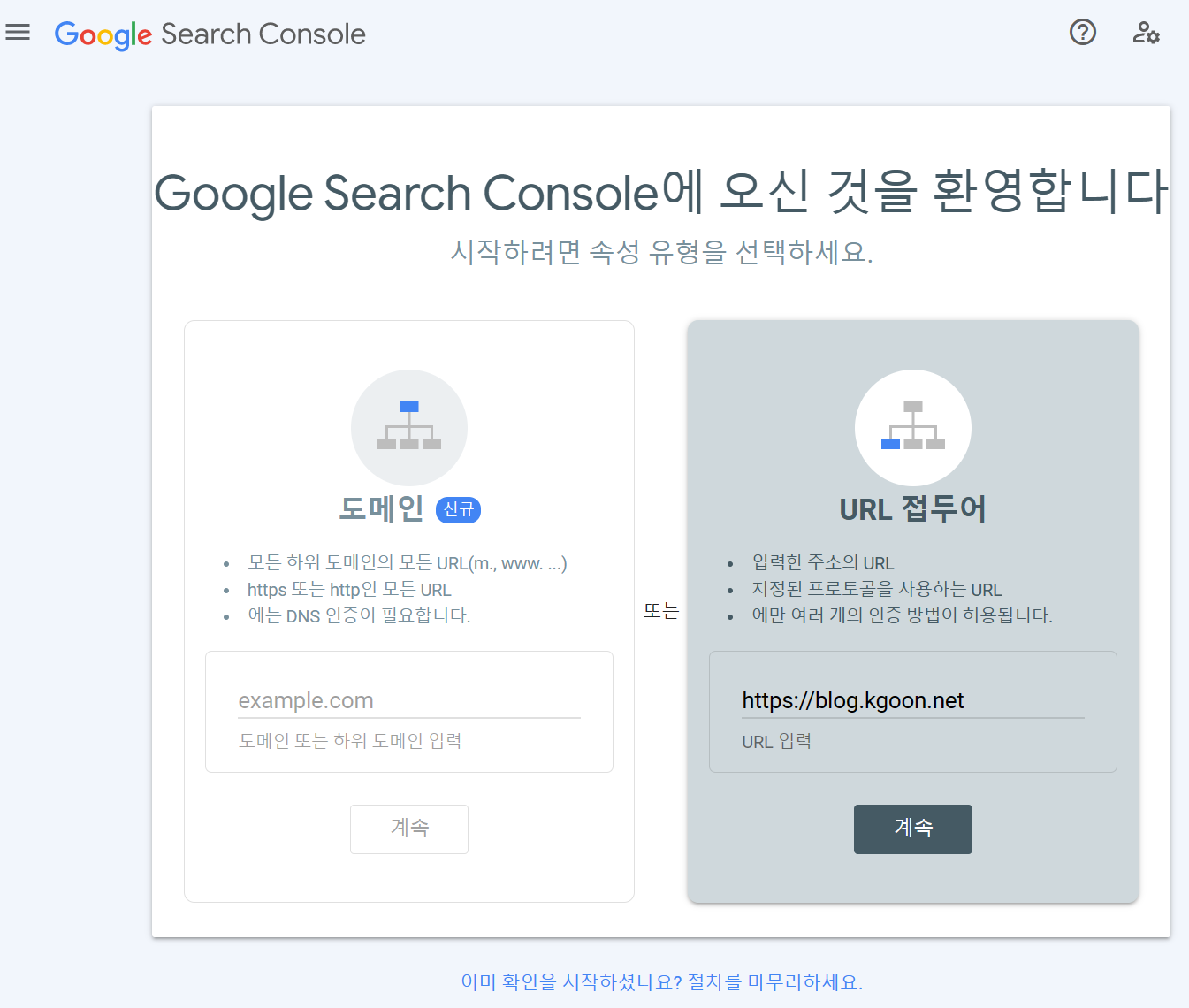 로그인 Google 검색 콘솔로 이동